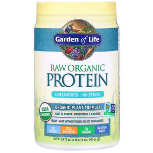 No SteviaUSDA OrganicNon GMO Project VerifiedEasy to Digest Probiotics & EnzymesVeganWithout Dairy or Soy Ingredients4 g BCAAs - 22 g Protein - 0 g Sugar - Gluten FreeKosher Certified B CorporationCertified Organic by QCSSmooth & DeliciousRaw Organic Protein is smooth, creamy and delicious. Every sip rewards your taste buds while it helps build and repair muscles. We use the cleanest proteins, including organic peas, plus 13 organic sprouted grains, seeds and legumes, with probiotics and enzymes added to promote comfortable and efficient digestion.No Compromises. No excuses. Truly Clean.Certified VeganUSDA OrganicRAWPlant BasedOrganic MattersRAW Whole Food14 organic grains, seeds & legumes. Third party certified by Vegan ActionFarmed without the use of toxic pesticides or fertilizersHeat and processing can denature proteinsClean No JunkTested and trusted for sportNon-GMO VerifiedGluten Free. No Dairy or Soy Ingredients, added sugars, artificial flavors or sweetenersInformed-Choice.org - Trusted for SportIndependent third party verificationCertified NSF Gluten-Free