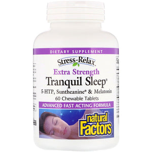 Dietary Supplement5-HTP, Suntheanine & MelatoninAdvanced Fast Acting FormulaSuitable for Vegetarians/VegansPurity & Potency GuaranteedTranquil Sleep Extra Strength formula is a unique combination of compounds that support relaxation and enhance natural sleep quality. In a tasty, tropical fruit-flavored chewable tablet.Isura: